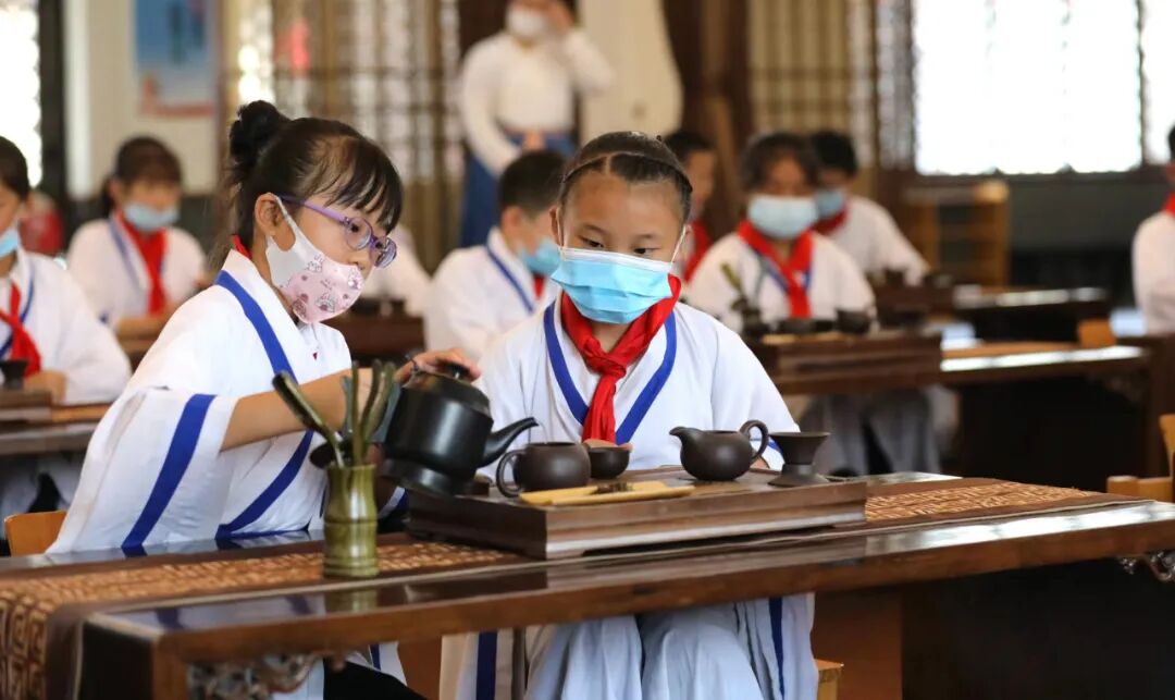 衡水市300余名学生在闾里古镇孙敬学堂学习茶道。衡水市文明办供图